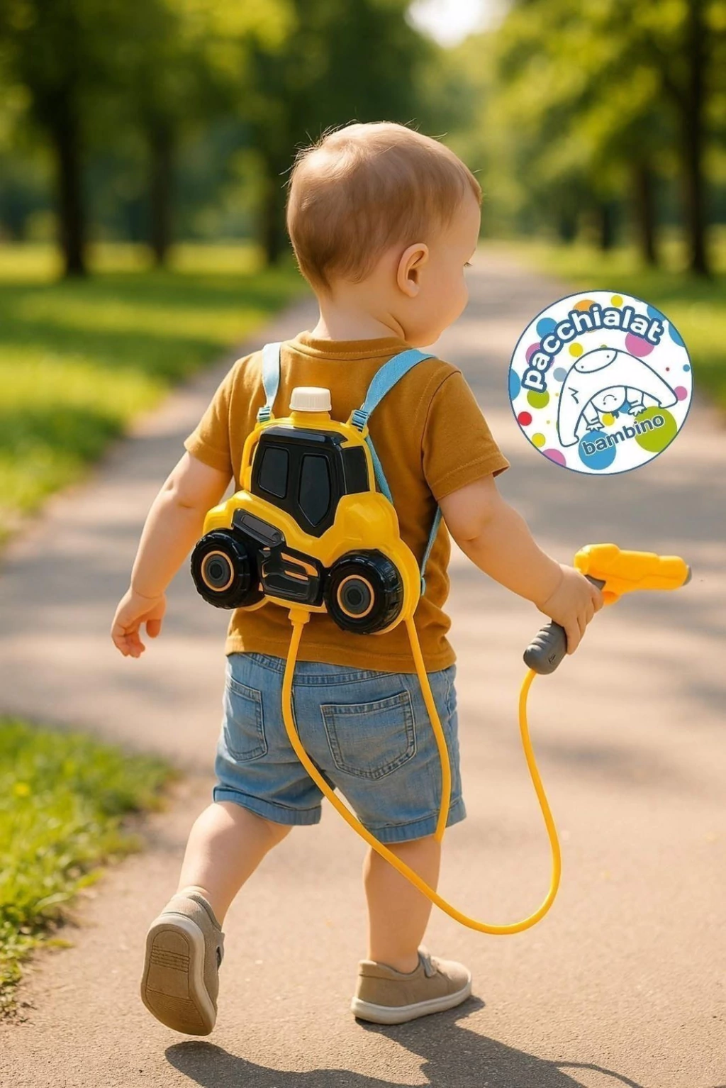 Con forma de camión, pistola de chorro ajustable y correas regulables, ¡es el juguete perfecto para los días de sol!