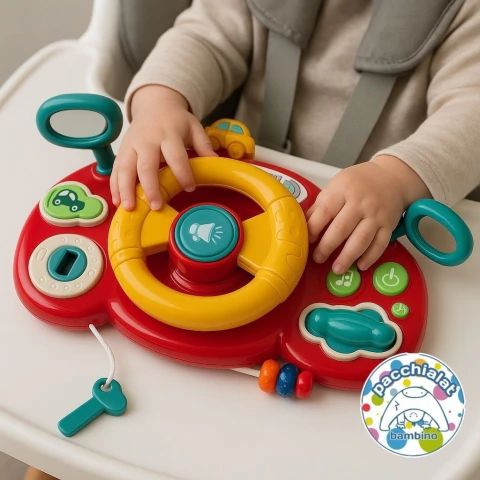 • Incluye volante giratorio, palanca de cambios, botones de luces y sonidos, ¡todo pensado para estimular la imaginación!